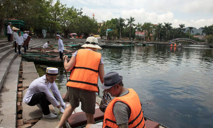 Embark on a traditional sampan gently roweddown the exquisite river through numerous caves: Lam Cave, Vang Cave, Dai Cave, Thanh Truot Cave,…and Cao Sơn Temple, Suoi Tien Temple, Vu Lam Temple…