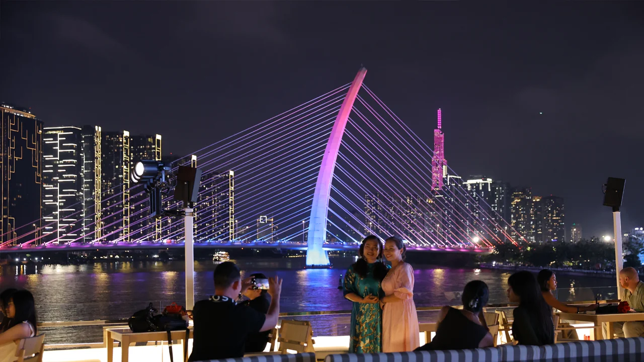 After dinner, guests move to the upper deck for mesmerizing views of the illuminated city skyline. A live jazz band or cultural performance adds to the enchantment.