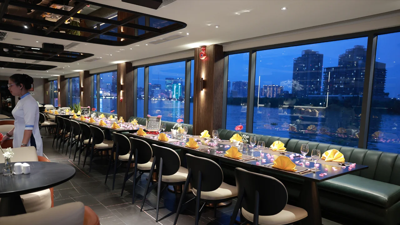 Set sail on The Elite of Saigon, a premier luxury cruise offering an exquisite fine dining experience along the picturesque Saigon River. Indulge in gourmet cuisine, premium beverages, and live entertainment while taking in the breathtaking skyline of Ho Chi Minh City.